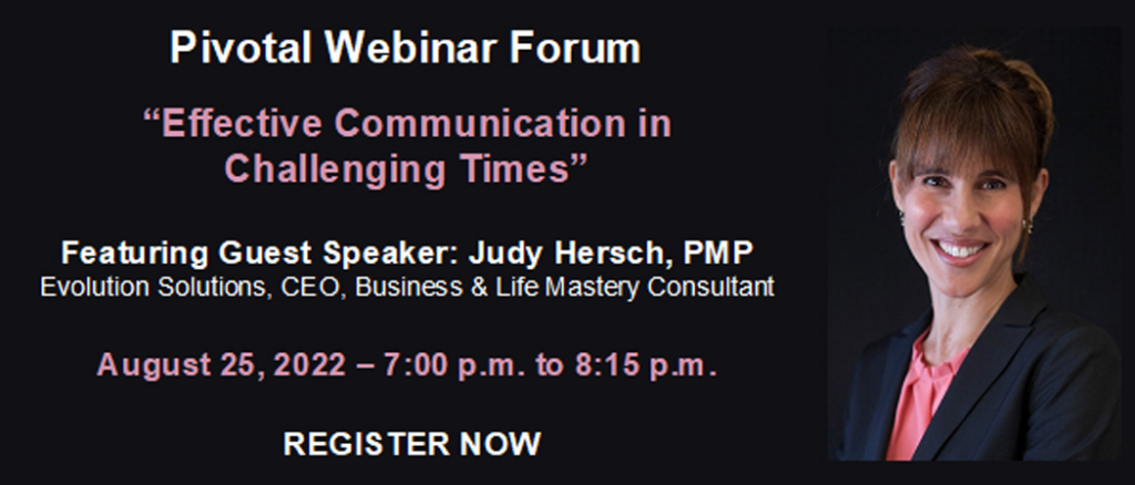 It was utterly amazing that we gained such knowledge within 60mins! I am almost sure you are now envisioning the same cliffhanger we all experienced. However, fulfill your curiosity by reaching out to Judy Hersch by email: judy@myevolutionsolutions.com or MyEvolutionSolutions.com. Remember, knowledge is power, so register for the next knowledge-packed session of Pivotal Webinars, Advanced Topic Session, or PMI-OC Dinner Meeting through the PMI-OC website!