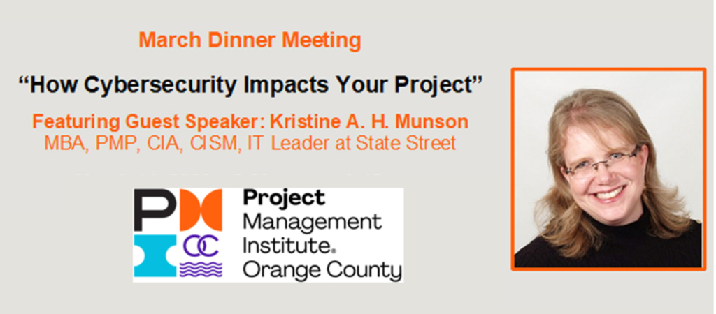 Cybersecurity awareness is crucial for IT projects and even projects without a specific IT focus. To create awareness about cybersecurity in your workplace, we need to make essential cybersecurity habits part of your work culture and identify cybersecurity risks in your risk register. In this March Dinner meeting, Kristine Hayes-Munson addressed how to make cybersecurity part of your communications management plan. She expressed being aware of the software’s terminology and that PMs should be aware of how it related to cybersecurity.